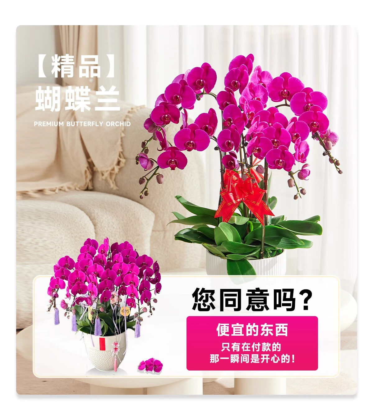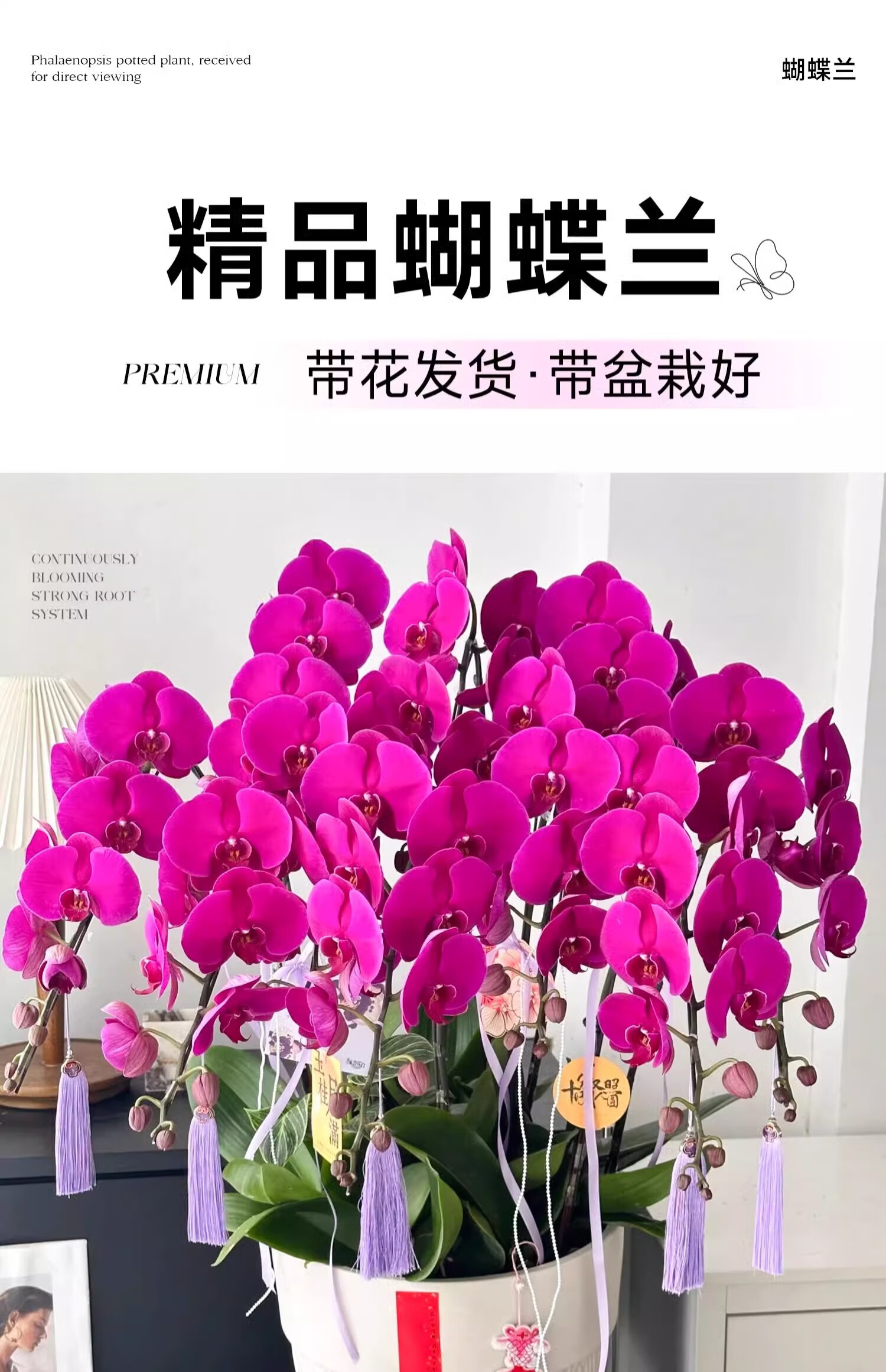 商品名称:临雅蝴蝶兰盆栽带花苞花剑兰花室内年宵花卉大花型植物春节好养活大盆 粉钻石(两梗)+小圆杯