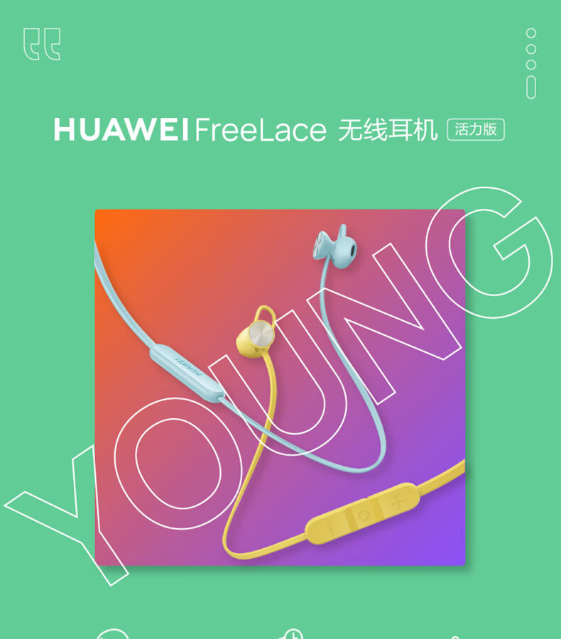 华为(HUAWEI)无线蓝牙耳机 freelace活力版 挂脖式 半入耳式 跑步运动降噪音乐耳机 云杉绿