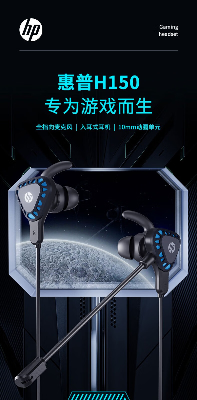 惠普(HP) H150 入耳式游戏耳机电脑手机通用耳机手游电竞耳麦吃鸡耳机 3.5mm接口