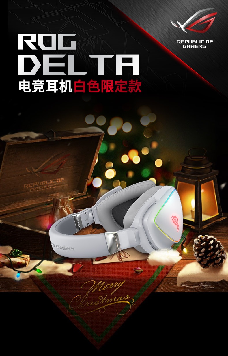 ROG棱镜白色限定版 游戏耳机 有线耳麦 ROG手机耳机 头戴式耳麦 带麦克风 环绕7.1音效 USB/TypeC接口