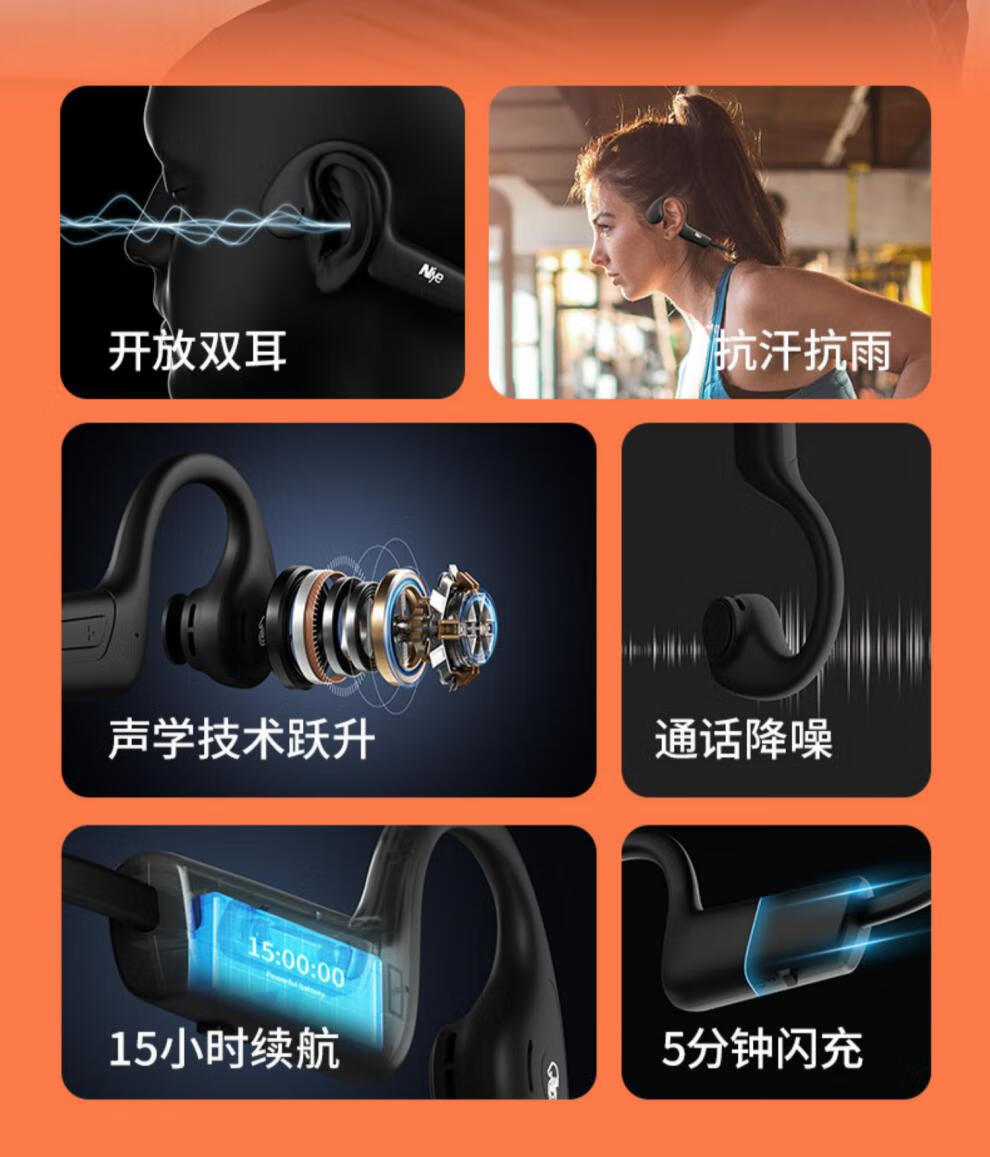 商品名称:索尼(SONY)适用真骨传导蓝牙耳机运动型跑步专用无线不入耳骨传感挂耳式游泳防水 骑士黑