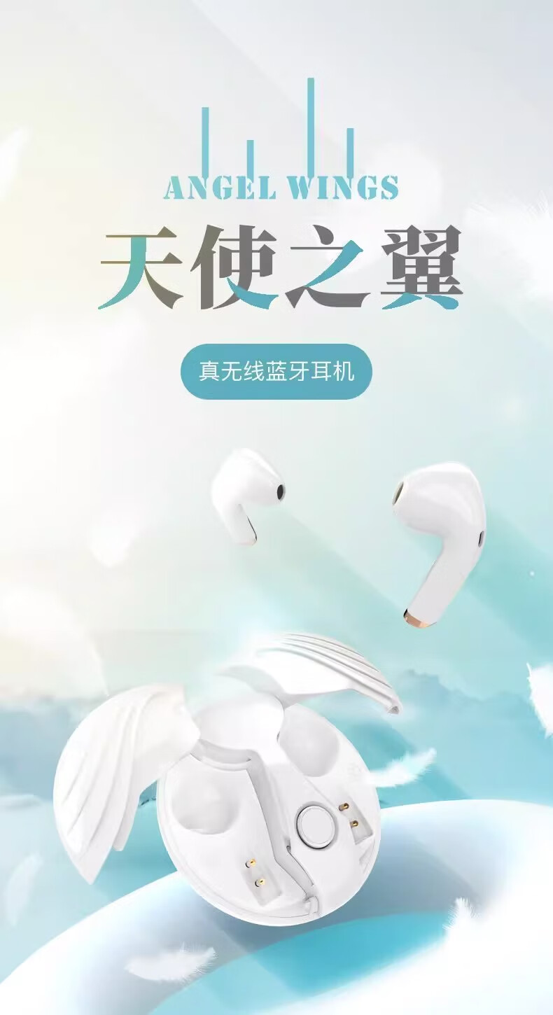 商品名称:泉途士 新款电竞TWS真无线蓝牙耳机降噪运动游戏长续航HIFI音质 白色 天使之翼