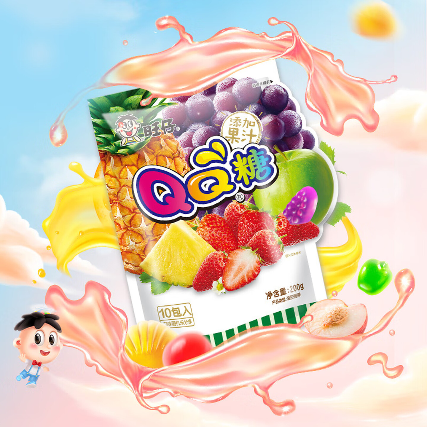 旺旺 旺仔QQ糖 200g 综合口味 内含10小袋 办公室休闲零食 软糖